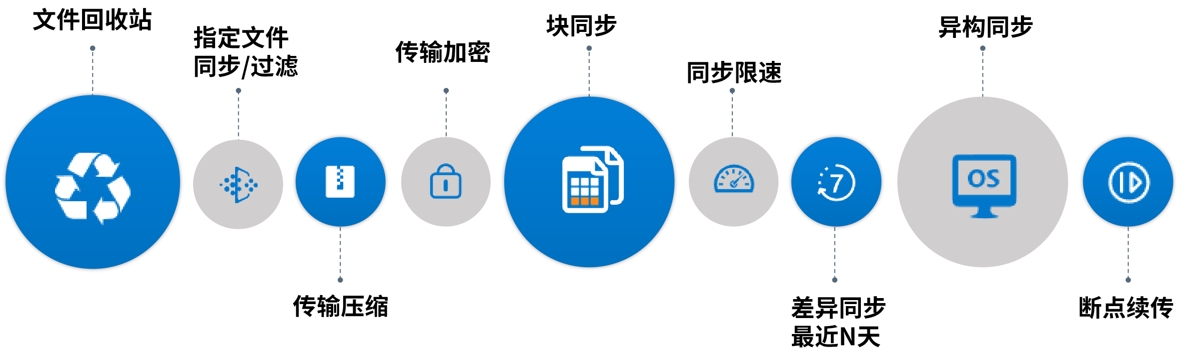 当文件发生部分变更时,只同步变更部分文件内容,大大提升频繁变化大文件时的同步效率,同时减少磁盘IO和网络IO的资源占用。