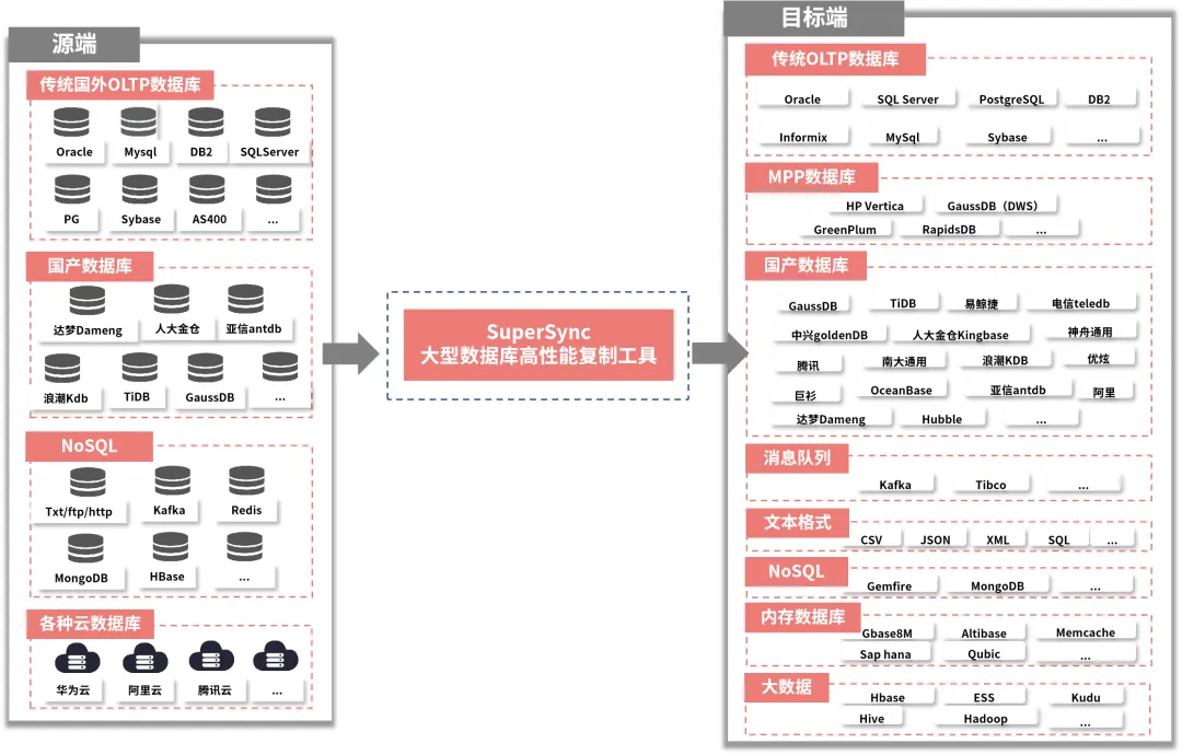 包括将数据从Oracle、SqlServer等数据库同步到达梦、人大金仓、神州通用等数据库,要求准实时同步、正常数据延时在秒级等。